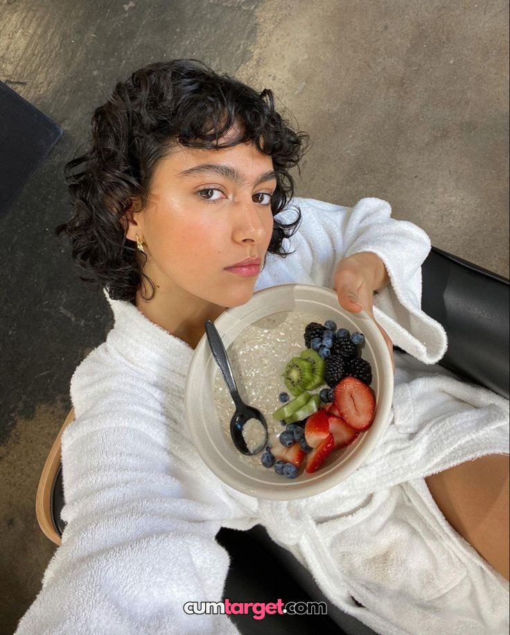 Cum target Cum target Woman in Robe Eating Fruit Bowl